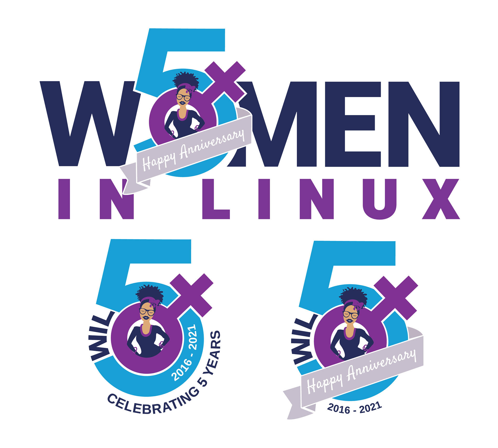 Worked with Women in Linux to create a celebratory 5th anniversary logo system along with merchandise for them to sell online.